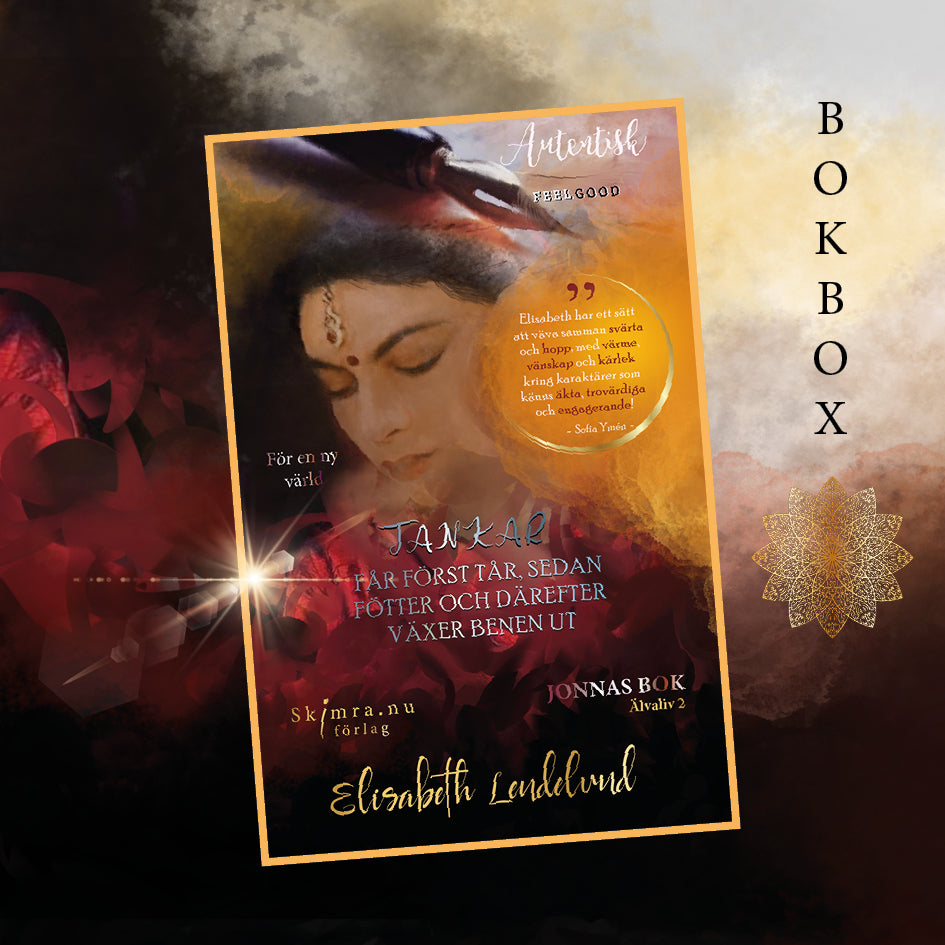Andra boken, Jonnas bok, är både vacker, gripande, sorglig och berörande. Jonnas bok handlar om att bli en människa när det värsta har hänt, att våga stanna i sitt hjärta även om det gör ont. Den handlar om sann vänskap, om kärlek i många former, om släktskap, skrivande, läkande och om livet magiska vindlar och vändningar. Jonnas bok berör också rädslor och hur de kan förleda. Den utspelar sig främst på Jonnas själshem Älvaliv ute på ön och i Indien vid olika tidpunkter men också i det vackra äppelriket på Österlen. 🧡