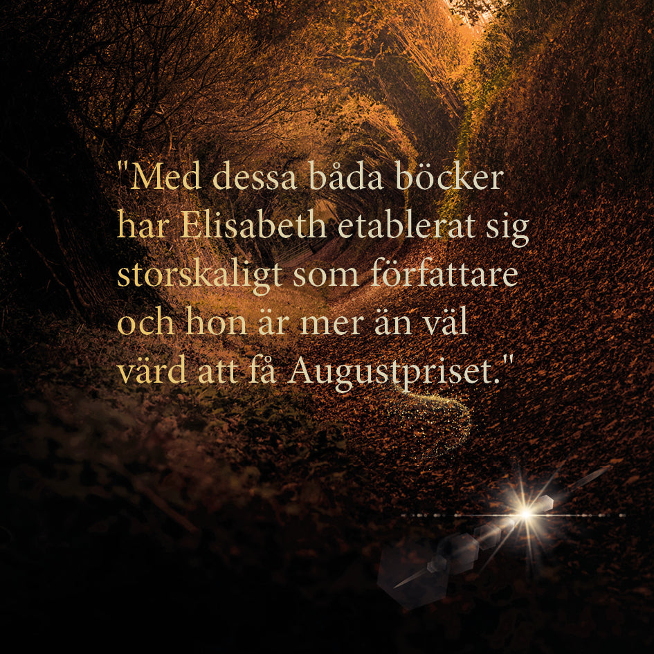 "Med dessa båda böcker har Elisabeth etablerat sig storskaligt som författare och hon är mer än väl värd att få Augustpriset."